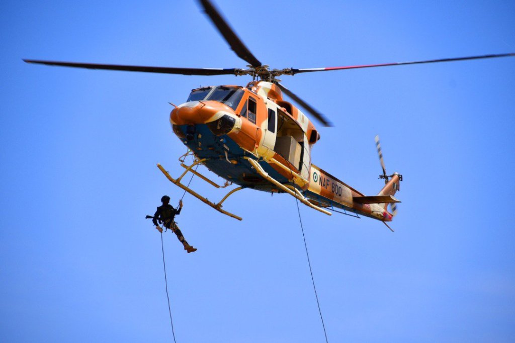 The occasion featured tactical demonstration by the graduating students, which included an air-ground assault simulation exercise involving the engagement of an enemy location by a HBDG from an EC-135 Helicopter as well as the rappelling of SF personnel from a Bell 412 Helicopter into a hostile environment to flush out bandits from their camp. Awards were also presented to graduating students who had distinguished themselves during the Course.