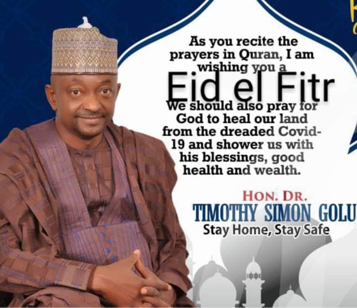 Golu emphasized that it is a day for reflection and pondering, peace and tranquillity, and for giving thanks and to ask Allah to flood us with his many blessings even as we perform this years Eid not on the prayer grounds but at home due to the Covid-19 pandemic. He emphasize on observing the rules set by the government and request that we continue praying to see to its end soon.
