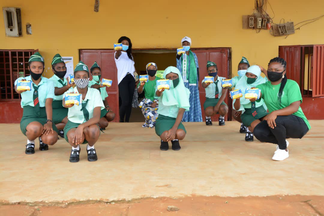 This visit was tagged 7″Period doesn’t Stop with Pandemic”. The project according to her was initiated to reach out to girls with free sanitary pads especially in this period of economic hardship orchestrated by COVID-19. She stressed that while much focus was given to providing palliatives, the girl child was left without much attention. This was her source of motivation in reaching out at this critical time.