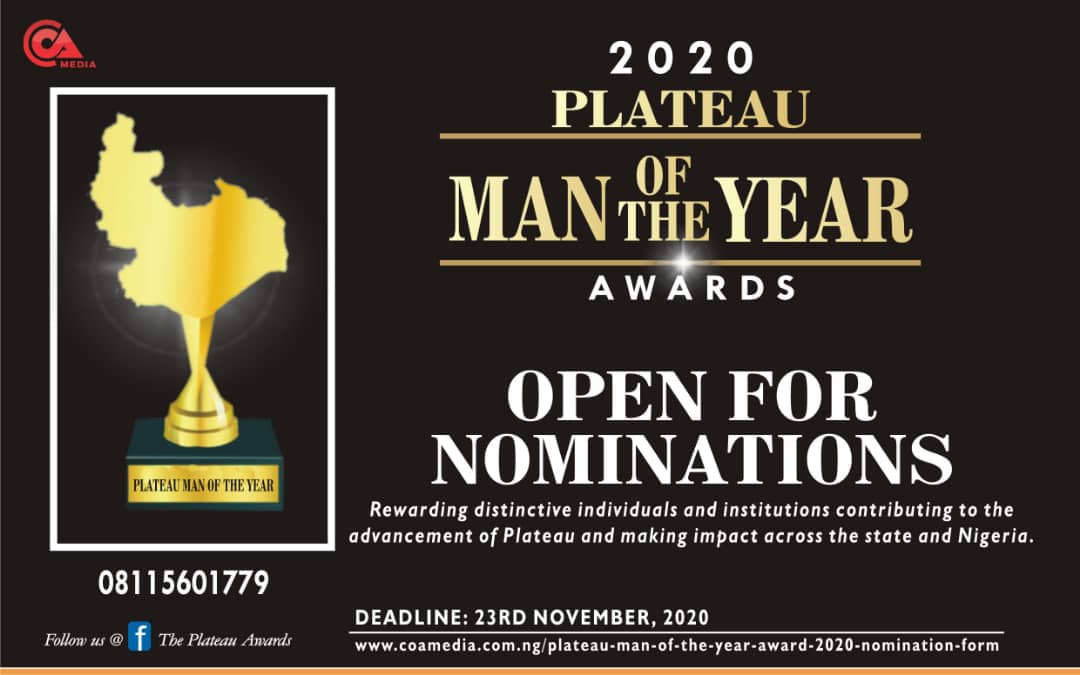 The 37 categories for nominations are available through this link http://www.coamedia.com.ng/plateau-man-of-the-year-award-2020-nomination-form or send details to plateauawards@gmail.com