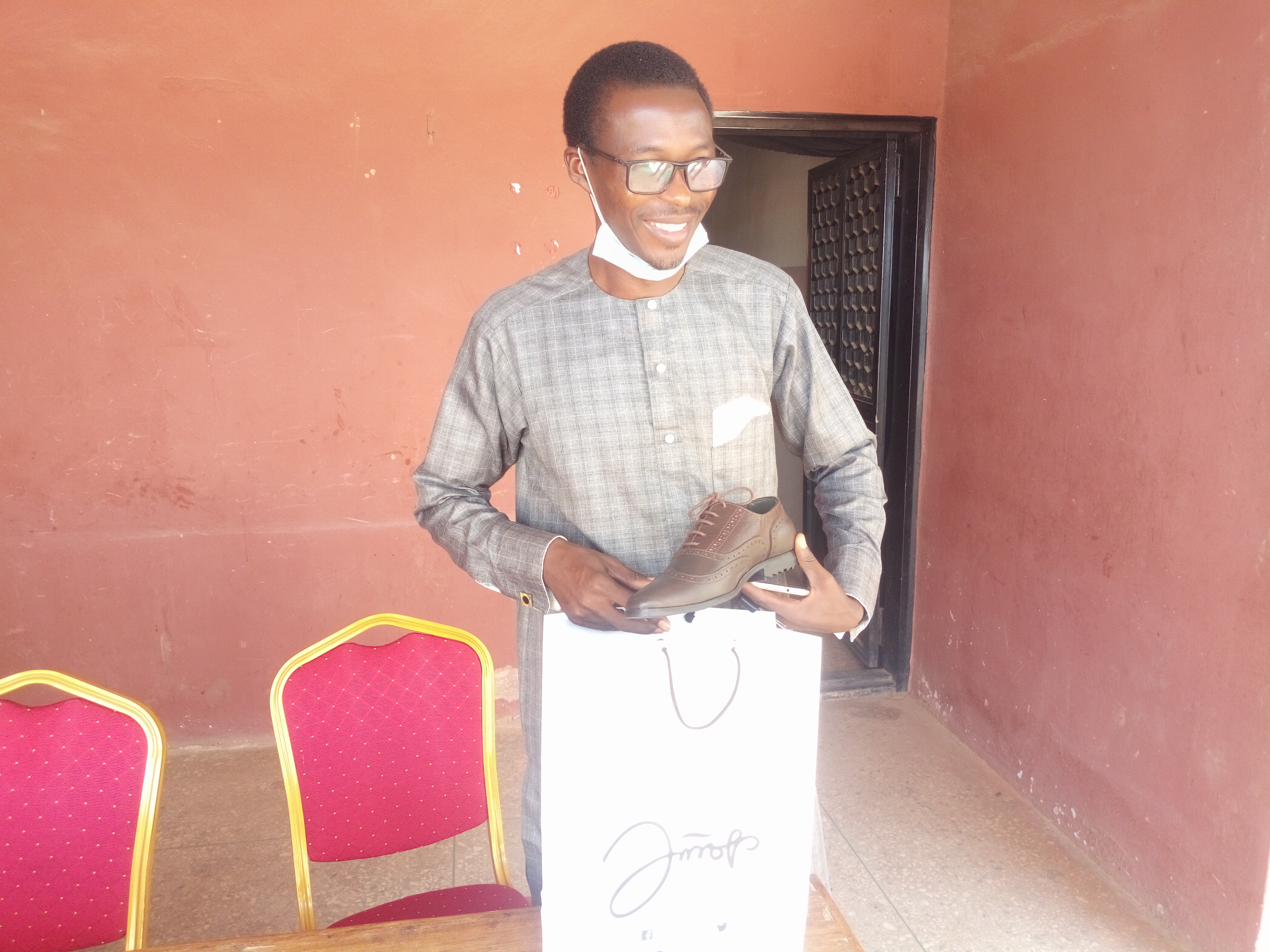 The CEO, JMOFS Enterprises, Mr Daniel Dung-Gwom has appreciated Ambassador Friday Bako for his dedication to the promotion of locally made foot wears, especially those made in Jos. It was a joyous moment when the CEO JMOFS presented the pair of shoes to Ambassador Friday Bako, in appreciation of his efforts to help the footwear industry in Jos.