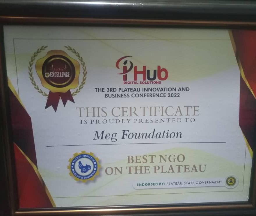 Meg Foundation has bagged an award as “Best NGO”. This award was presented by iHub in Jos the Plateau State Capital. Meg Foundation is a non Governmental organization NGO in Plateau State with the sole aimed of providing humanitarian services to the poor, widows and orphans, aged, people with disability, women and Vulnerable children.