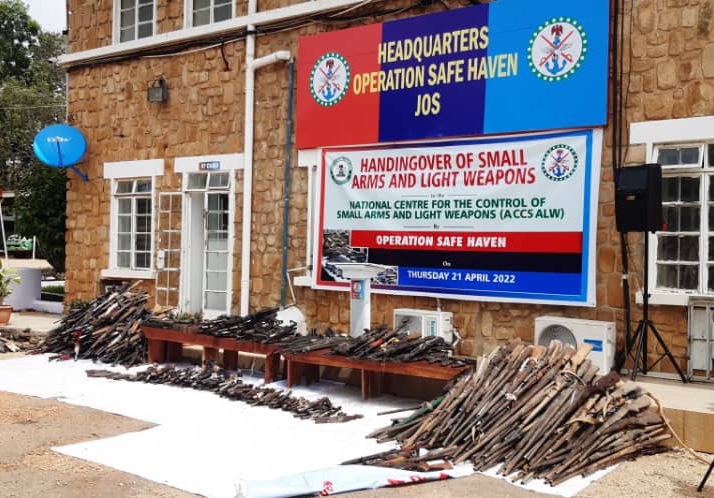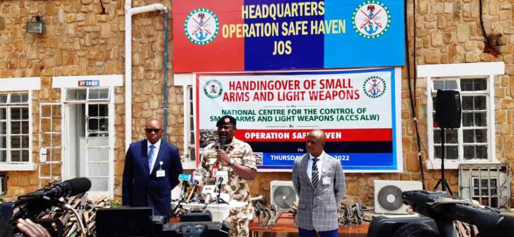 The Military Special Task Force code named ‘Operation Safe Haven’ has recovered small arms and light weapons numbering five hundred and seventeen (517). This was disclosed in a ceremony organized by the Commander Operation Safe Haven/GOC 3 – Division, Major General IS Ali at the Headquarters of Operation Safe Haven in Jos, where the recovered weapons were handed over to the North Central Coordinator of the National Center for the Control of all Arms and Light Weapons Major General H. I Bature (Rtd) on Thursday 21th April 2022.