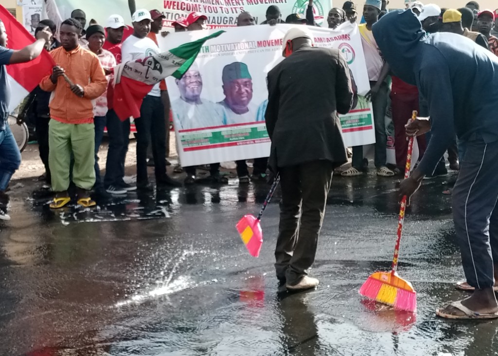 Youths belonging to different support groups have embarked on what they called a ‘cleansing exercise’ of the street housing the Rwang Pam Township Stadium, Jos to express displeasure over the flag-off of the APC Presidential Campaign which held at the same venue on Tuesday 15th November 2022.