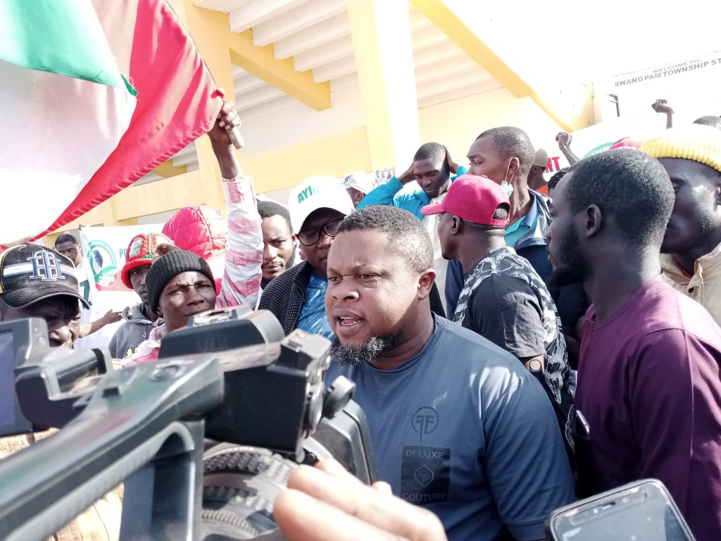 The youths who converged at the entrance of the Rwang Pam Township Stadium early hours of Wednesday with a Water Tank chanted Solidarity Songs for the Presidential Candidate of the Peoples Democratic Party (PDP) Alhaji Atiku Abubakar GCON and the Gubernatorial Candidate of the PDP in Plateau State, Barrister Caleb Mutfwang.