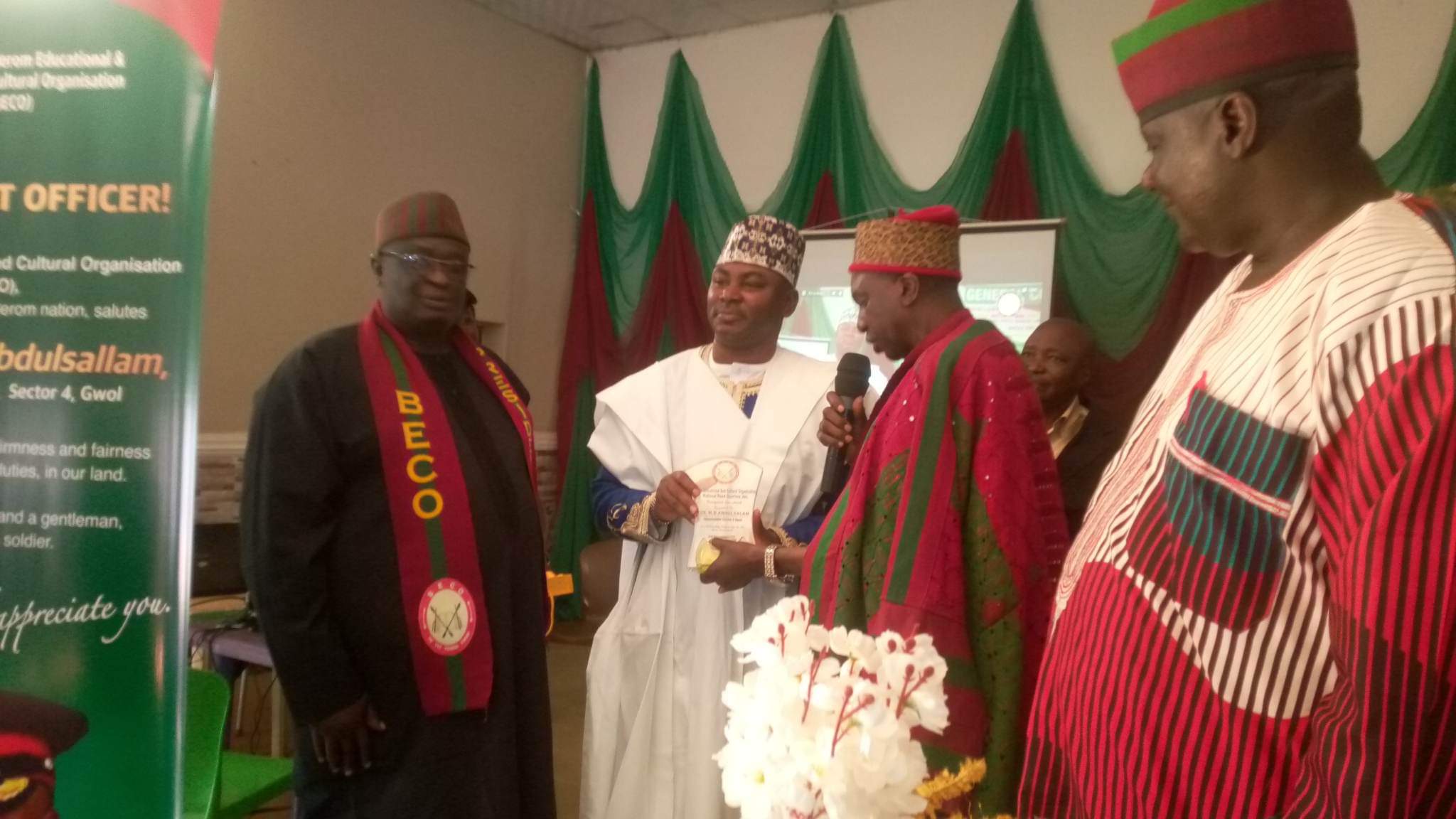 While appreciating the Berom Nation for the honour, Col. Abdulsalam urged BECO to redouble efforts in sensitizing the people on the need to eschew bitterness, forgive and tolerate one another so as to achieve peaceful coexistence.