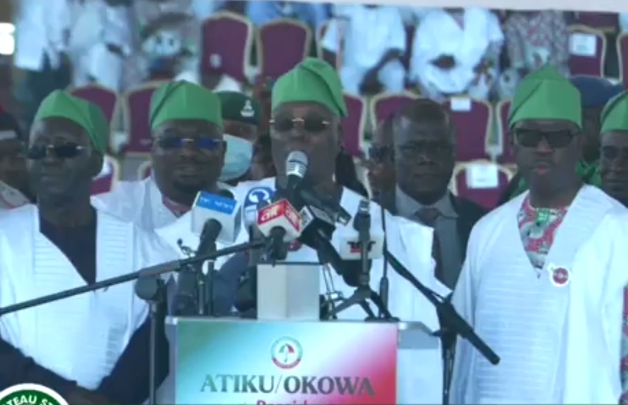 Atiku Abubakar, in company of his running mate His Excellency Senator (Dr) Ifeanyi Okowa, the National Chairman of the PDP Sen Iyorcha Ayu and other member of his entourage.