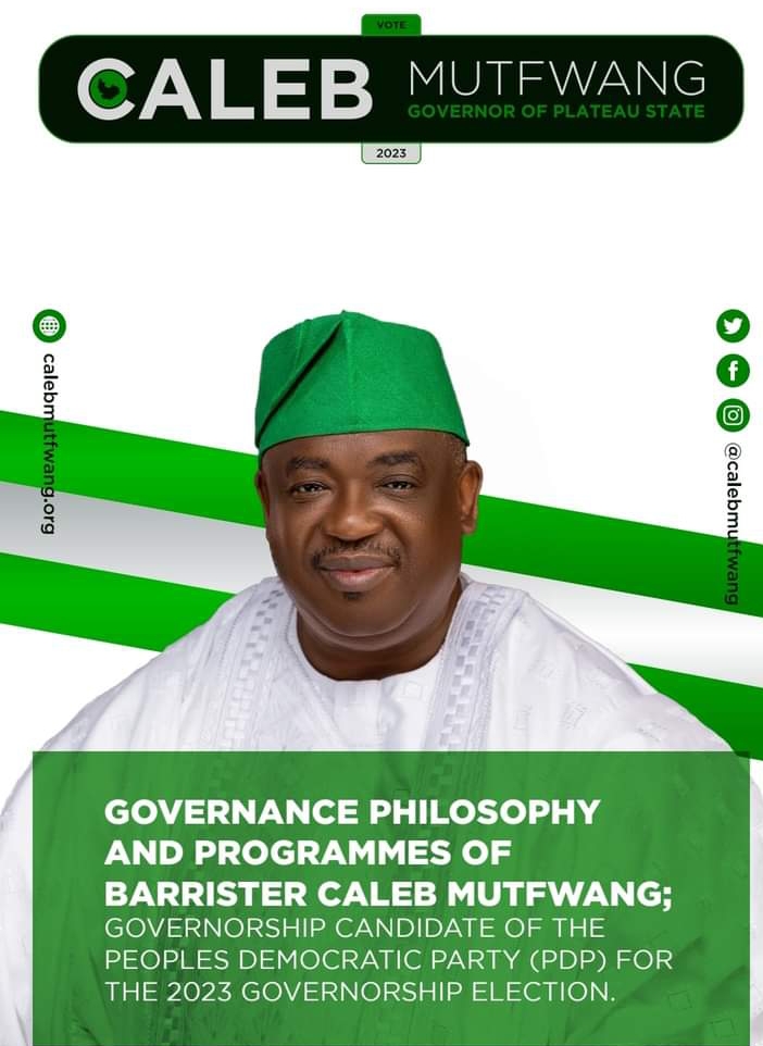 This was contained in a Statement issued by the Director, Media and Publicity of the Atiku-Okowa/Mutfwang-Piyo Campaign Council Hon Yiljap Abraham and made available to this medium. Mutfwang unveiled the document titled: _GOVERNANCE PHILOSOPHY AND PROGRAMMES OF BARRISTER CALEB MUTFWANG, GOVERNORSHIP CANDIDATE OF THE PEOPLES DEMOCRATIC PARTY (PDP), FOR THE 2023 GOVERNORSHIP ELECTION._