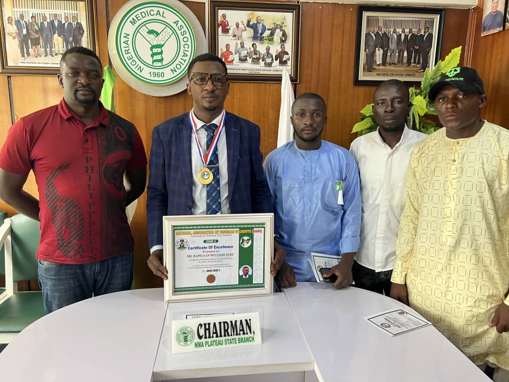 The Chairman Nigerian Medical Association (NMA) Plateau State Chapter, Dr William Bapiga’an Audu has receive the Integrity and Leadership Award of the Young Youth Network Nigeria as ICON OF NATION BUILDING/YOUTH EMANCIPATOR and the National Association of Nigerian Students (NANS) Zone C award for Outstanding Performance.