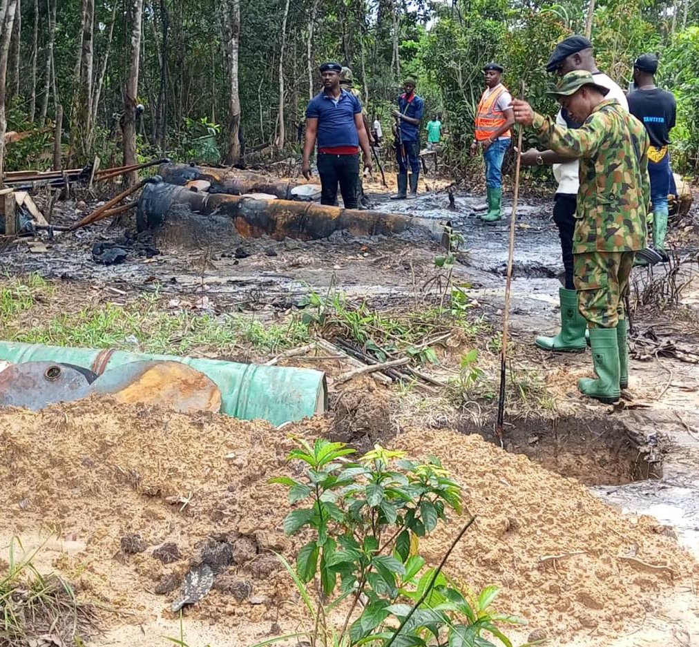 In a sustained effort to deny oil thieves freedom of action in South South Nigeria and protect the Oil sector from economic sabotage, troops of 181 Amphibious Battalion of the Nigerian Army (NA) operating in 6 Division Area of Responsibility, in conjunction with operatives of the Nigerian Security and Civil Defence Corps (NSCDC), as well as operatives of Tantita Security, have uncovered a major illegal oil refining site at Owahwa community in Ughelli South Local Government Area of Delta State.
