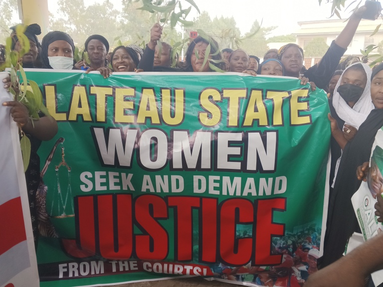Women in Jos, the Plateau State capital today came out in their numbers wearing black coloured clothing in protest demanding Justice over the Court of Appeal Judgement that sacked all members of the National Assembly elected under the platform of the Peoples Democratic Party (PDP) which they said they overwhelming voted for, adding that their mandate has been stolen and hence are demanding that they want it back.