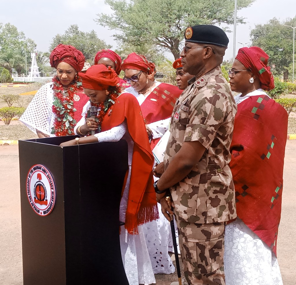 Earlier, the NAOWA President and wife of the Chief of Army Staff Mrs Maria Lagbaja commissioned a 300 seating capacity NAOWA Multipurpose Hall, the renovated and remodeled NAOWA Nursery and Primary School, the NAOWA Bus Stop and Tricycle Transport Scheme and the emergency medical response ambulance.