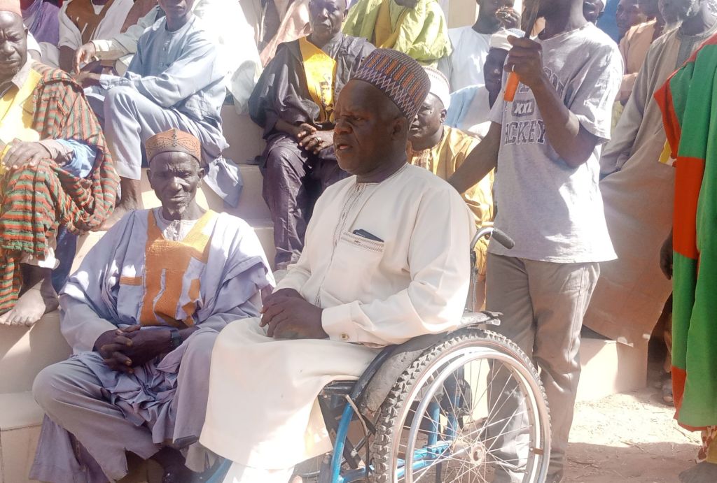 He made this call on Saturday 29th December 2023 at the Palace of the Ra’an Jhar Alhaji Mamud Maikano in Dogon-Ruwa, Kantana Constituency, Kanam LGA of Plateau State while presenting 30 tri-cycle wheel chairs to the monarch for on ward distribution.