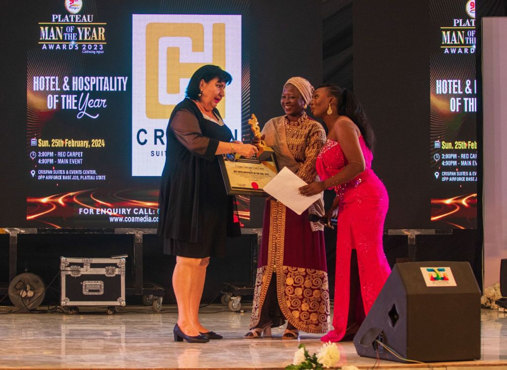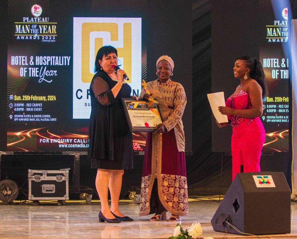 Receiving the award as ‘Best Hotel and Hospitality Center of the Year in Plateau State’ at this year’s edition of the awards held at the Gowon Hall of Crispan Suites and Event Center, Jos on Sunday 25th February 2024, General Manager Crispan Suites and Event Center, Mrs Svetlana Alexandrovna highlighted recent enhancements to the facility which include the addition of a VIP Lounge backstage at the Gowon Hall and measures to reduce hall reverberation.