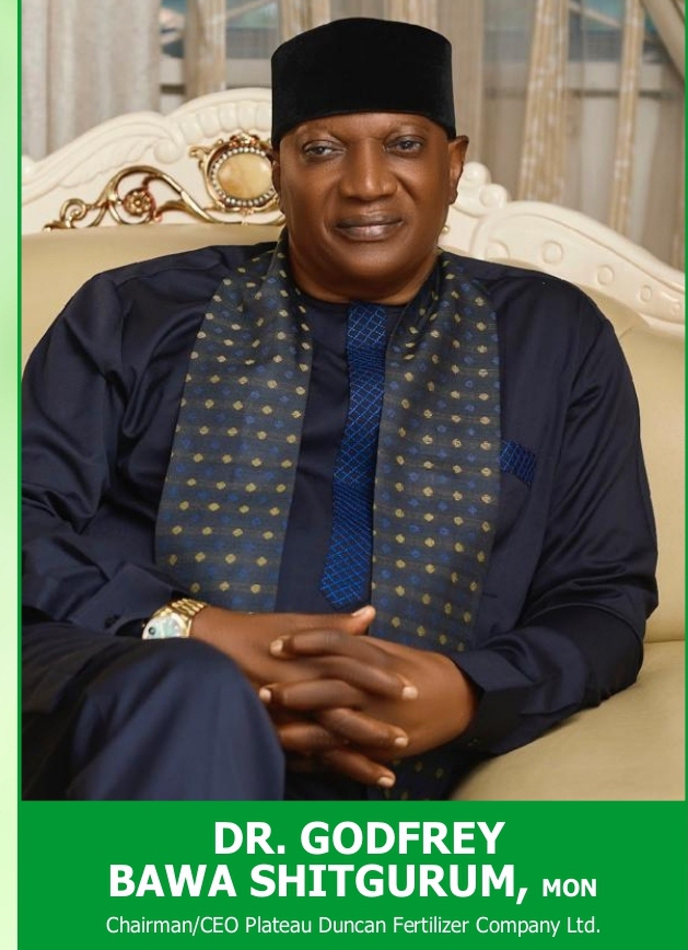 Chairman and Chief Executive Officer (CEO) of the DUNCAN GROUP OF COMPANIES, owner of Plateau Duncan Fertilizer Company, located in Larwin, Heipang, Barkin Ladi LGA, Dr. Godfrey Bawa Shitgurum, MON