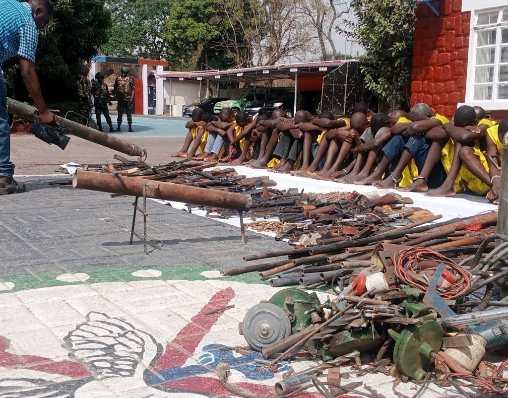 Suspects and Recovered Arms Being Paraded at the Operation Safe Haven Headquarters in Jos