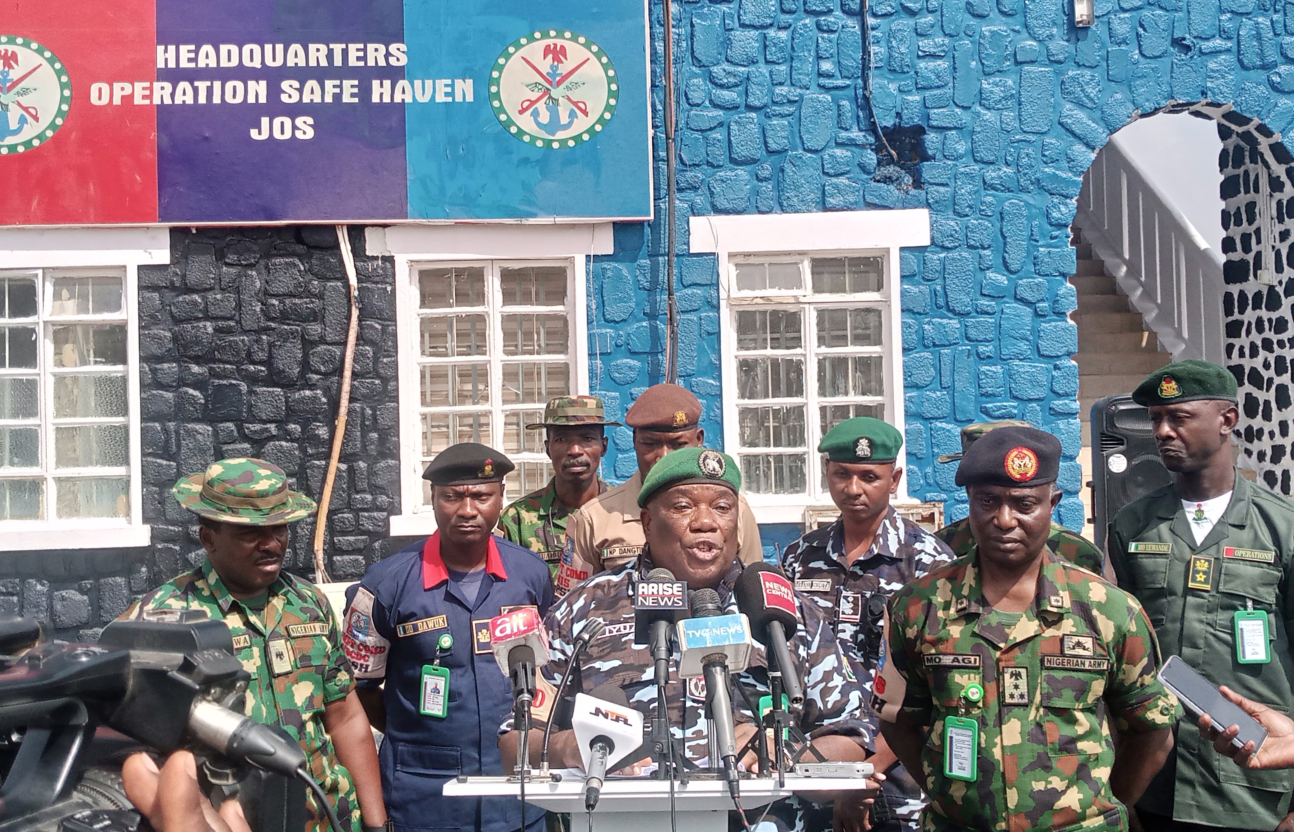 Deputy Commander Operation Safe Haven DCP Iyua, T Addressing the Press at the Headquarters Operation Safe Haven in Jos