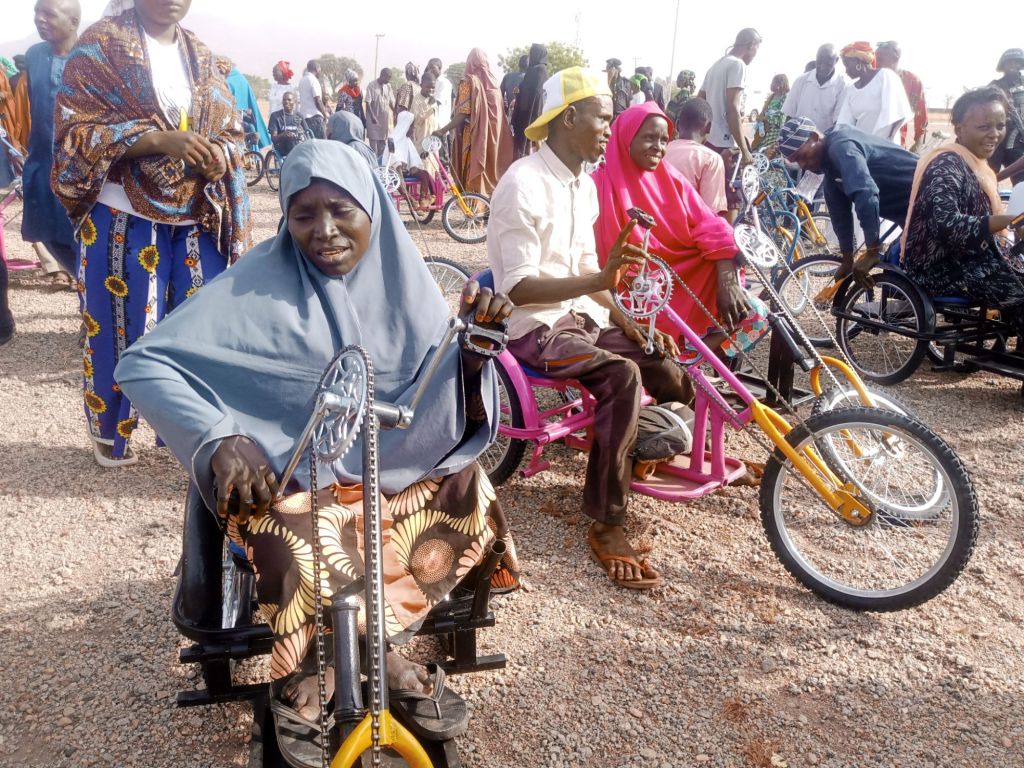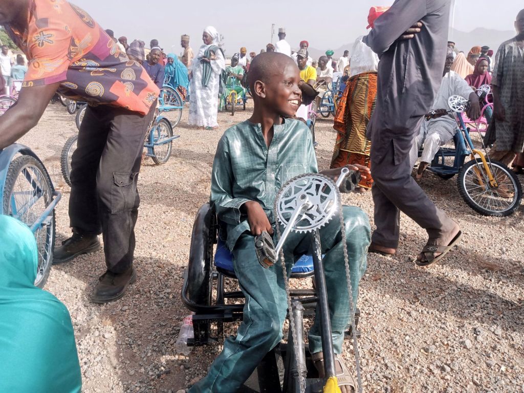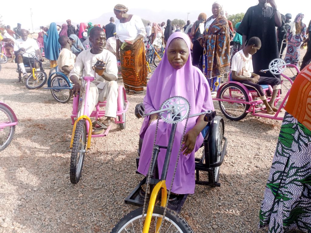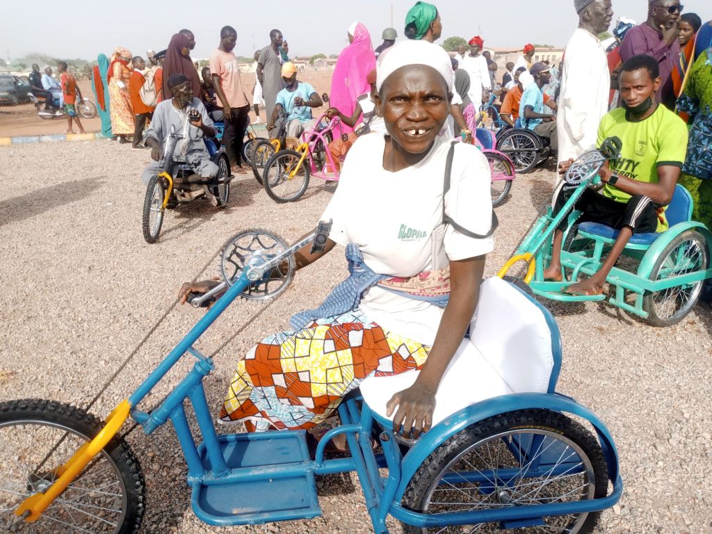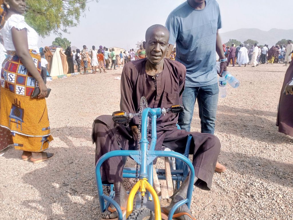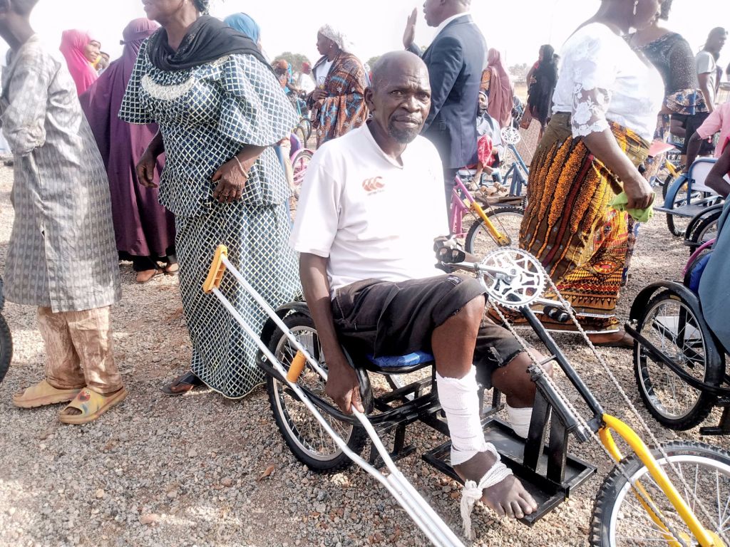Shortly after handing over the 150 Tricycle-wheelchairs, 40 sets of Crouches, 40 Walking Frames and walking sticks, the Executive Director of Beautiful Gate Handicapped People’s Center Jos,
